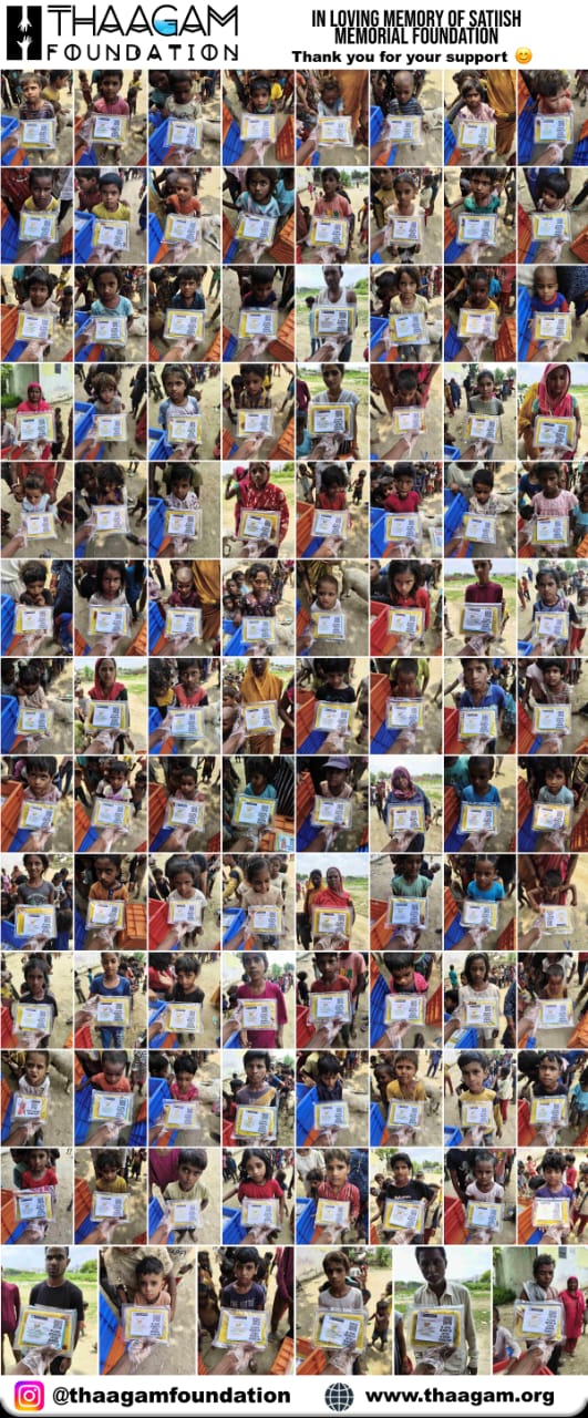 The Satiish Memorial Foundation was organised a food donation program for 100 children/individuals in association with THAAGAM Foundation in loving memory of Satiish, on the occasion of his 4th Punyatithi, in whose memory the Satiish Memorial Foundation was established.